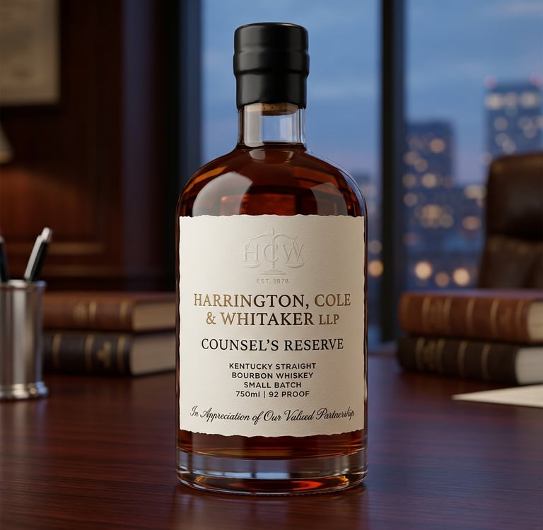 No — we handle the legal logistics through licensed distilleries and retailers. You’re purchasing private-labeled, fully compliant bottled spirits that are ready to gift and serve.